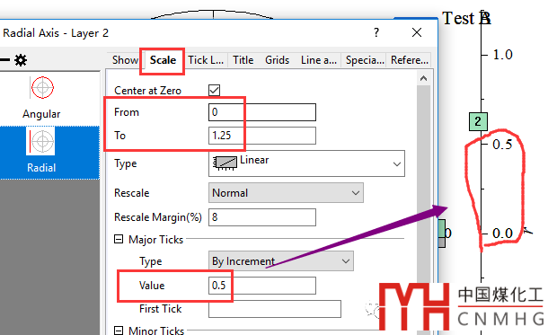 本例中Layer1的Scale范圍是0-11,Ticks間隔是2;Layer2中為0-1.25、0.5。