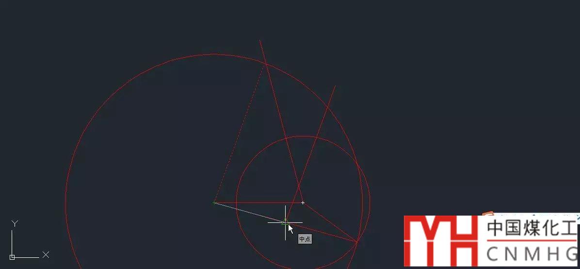 8、選擇長度100的線,執(zhí)行移動M命令,基點選擇自己的中點,目標點選擇剛才提到的交點,如圖所示。