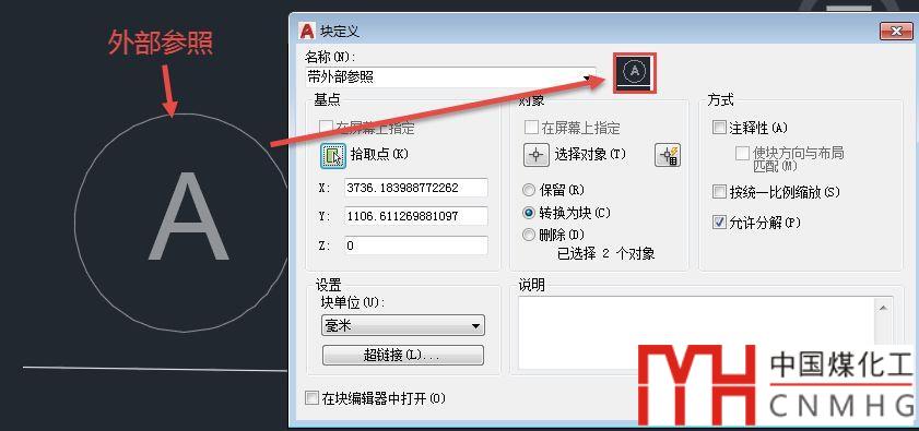 對(duì)圖塊反向裁剪或炸開此圖塊后就看到了外部參照,如下圖所示。