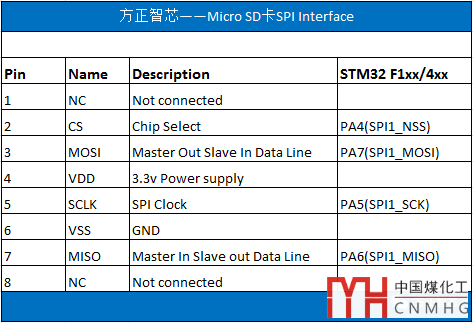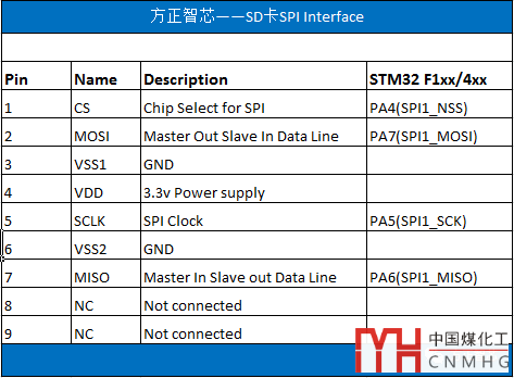 下面這張表格是微型SD卡在SPI模式下引腳的定義: