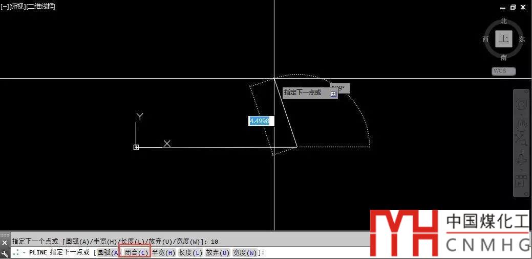 當(dāng)繪制了一條線(xiàn)段后,注意命令行又多了一個(gè)閉合(C)參數(shù)。