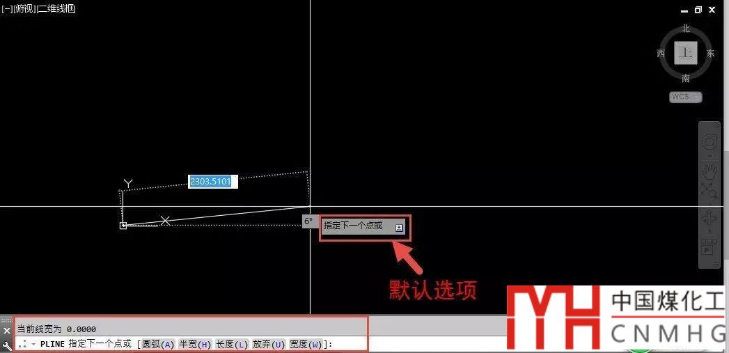 我們看到默認(rèn)的選項(xiàng)是:指定下一個(gè)點(diǎn),也就是我們可以通過(guò)指定一個(gè)點(diǎn)來(lái)繪制一條直線(xiàn)段。同時(shí)我們可以看到多段線(xiàn)還有 [圓弧(A)/半寬(H)/長(zhǎng)度(L)/放棄(U)/寬度(W)]:等多個(gè)參數(shù),其中括號(hào)里的字母叫做是參數(shù)的關(guān)鍵字,輸入這個(gè)字母后,回車(chē)就可以調(diào)用相關(guān)選項(xiàng)。