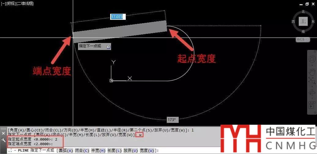 多段線(xiàn)除了有一個(gè)寬度(W)參數(shù)外,還有一個(gè)半寬(H)參數(shù),兩者的作用是一樣的,用哪一個(gè)參數(shù)取決于我們的已知條件。