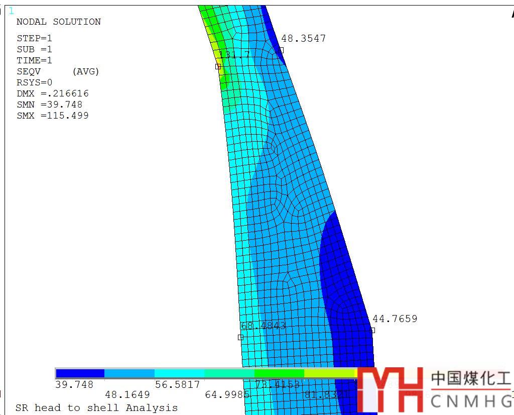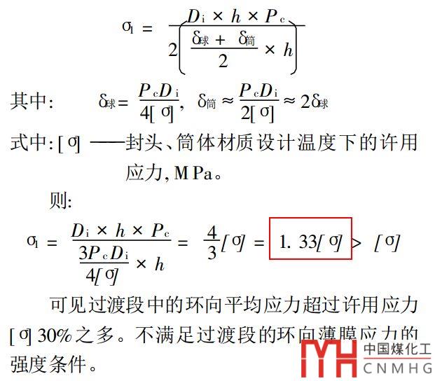 第二點(diǎn)是:封頭弧段和筒體直段要各自薄膜應(yīng)力合格。