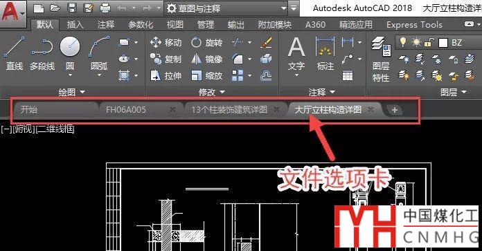 在AUTOCAD 2014以上版本,增加了顯示圖紙文件名的選項(xiàng)卡,可以顯示打開圖紙的文件名,如下圖所示。