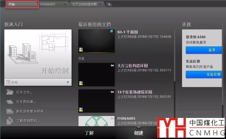 除此以外,AUTOCAD在啟動(dòng)的時(shí)候還會(huì)顯示一個(gè)開始頁,在開始頁面會(huì)顯示快速入門幫助,打開文件、圖紙集,顯示最近打開文件,當(dāng)然還有AUTODESK相關(guān)網(wǎng)站鏈接,如下圖所示。
