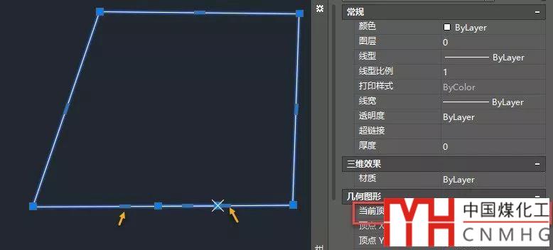 在CAD高版本中,圖形重疊部分還能看出來,線看起來比其他地方粗一些,低版本則完全看不出來,重疊的情況很難發(fā)現(xiàn),我們可以打開特性面板,找到線的頂點(diǎn)編號(hào),通過箭頭依次查看頂點(diǎn)的位置,就可以比較容易找出重疊的位置,如下圖所示。