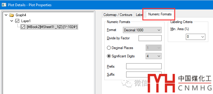 Numeric formats選項(xiàng)卡:設(shè)置數(shù)據(jù)的有效數(shù)字位數(shù),此處不做具體討論。