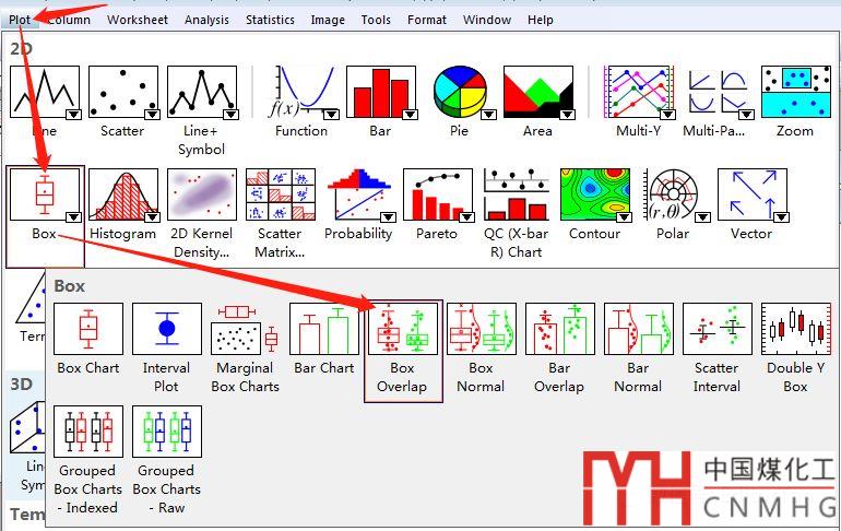 我們選擇數(shù)據(jù)表的前兩列數(shù)據(jù)(Jsc),點(diǎn)擊菜單Plot找到箱線圖。