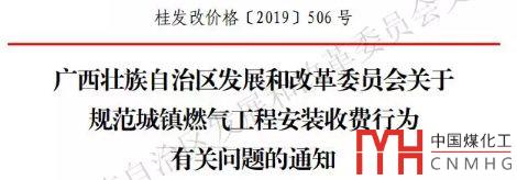2019年5月,廣西省發(fā)改委再次就居民燃氣工程收費發(fā)文,要求保持收費水平在一定時期內(nèi)要基本穩(wěn)定,目前暫定在2018年底水平,2019年1月1日以來以提高收費標準的應(yīng)降低至2018年底水平。