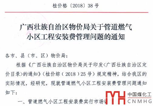 2018年4月,廣西省發(fā)文決定從2018年5月1日開始放開接駁定價,管道燃氣小區(qū)工程安裝費由原來政府定價管理改為實行市場調(diào)節(jié)價。