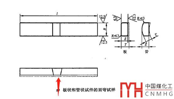 c)試樣的受拉面為焊縫正面的彎曲為面彎,具有較大焊縫寬度的面稱為正面,當(dāng)兩面焊縫寬度相等,則先完成蓋面層焊縫一側(cè)為正面;