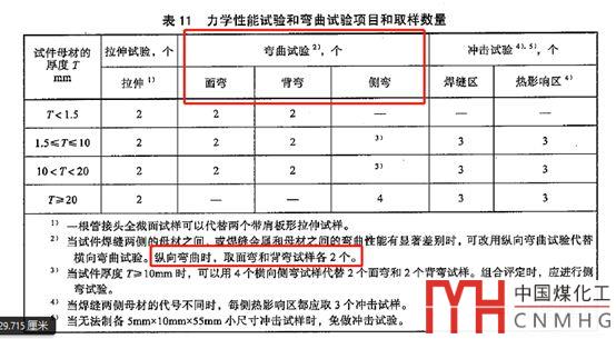 按GB/T 150.4的7.2.1規(guī)定,NB/T 47014為“法定“的焊接工藝評定標(biāo)準(zhǔn)。而按NB/T 47014的6.4.1.1彎曲試驗為焊縫試件的必檢項目。如標(biāo)準(zhǔn)的表11(下面的截圖)所示,焊縫彎曲試驗包括:橫向彎曲、縱向彎曲,還包括面彎、背彎、側(cè)彎,名目繁多呀。那么焊縫彎曲試驗,與此前我們介紹過的GB/T 713中的鋼板彎曲試驗有何異同呢?