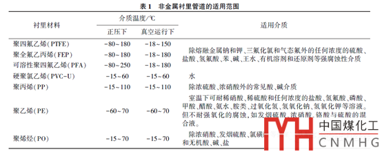 聚四氟乙烯等塑料因其本身的機(jī)械性能較差,所以通常作為設(shè)備或管道襯里。而像聚四氟乙烯,它幾乎可以抵抗任何濃度的硫酸,且適用溫度范圍要比金屬寬。具體見(jiàn)下表: