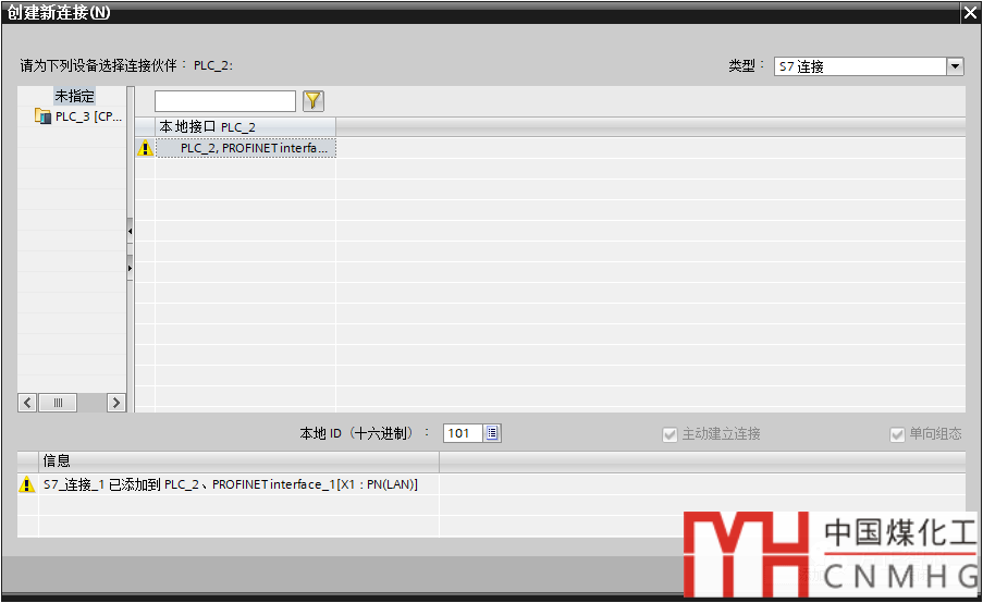 在彈出的“創(chuàng)建新連接”的對話框中,選擇CPU1215C的通信伙伴為“未指定”,點擊“添加”按鈕,添加一條S7連接。如下圖: