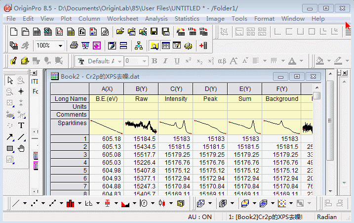 這里導(dǎo)入了一個XPS數(shù)據(jù)文件,其中包括Raw(原始數(shù)據(jù))和分峰數(shù)據(jù)(如上圖導(dǎo)入的數(shù)據(jù)表所示),可以點擊數(shù)據(jù)表頂部的列標題,全選某列數(shù)據(jù),或向其他列標題拖選幾列數(shù)據(jù),然后點擊下方的繪圖工具作圖。具體步驟如下動圖所示。