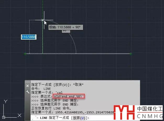 表示在P1P2兩點的直線上距離P1為distance的點,比如表達式輸入pld(END,END,58)將P1和P2設(shè)置成一條直線的兩個端點,然后我們定位到距離其中一個端點58的點,如下圖所示。