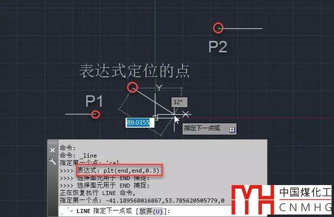 當(dāng)然上述操作用CAD的FROM或TK捕捉,或者用浩辰CAD中的距端點捕捉都可以實現(xiàn)。但這個函數(shù)中P1和P2可以是圖中圖形的特征點,也可以直接輸入坐標(biāo)值,比如我們可以直接取坐標(biāo)20,20到800,600兩點連線上距離60的點,就可以輸入pld([20,20],[800,600],60)。