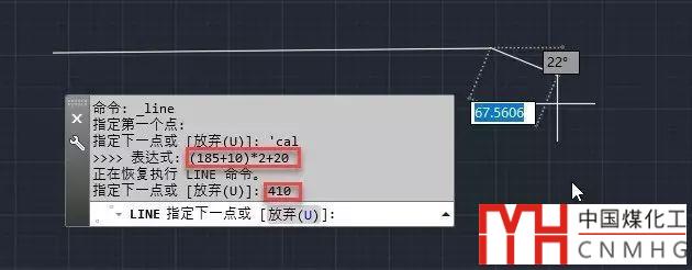 基本算式包括簡單的加減乘除運算,在算式還可以使用括號,比如圖中標(biāo)注的直線尺寸是兩個185和10加上一個20,我們要一次性將這條直線繪制出來,就可以利用計算器輸入:(185+10)*2+20,我們就不需要心算了,如下圖所示。