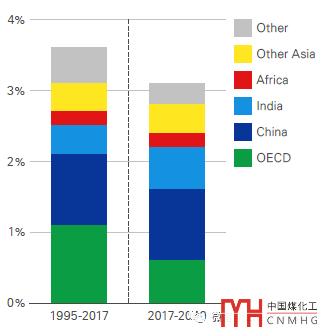 全球煤炭消費(fèi)基本持平,中國(guó)和經(jīng)合組織的煤炭消費(fèi)下降被印度和其他亞洲國(guó)家煤炭消費(fèi)的增長(zhǎng)所抵消。