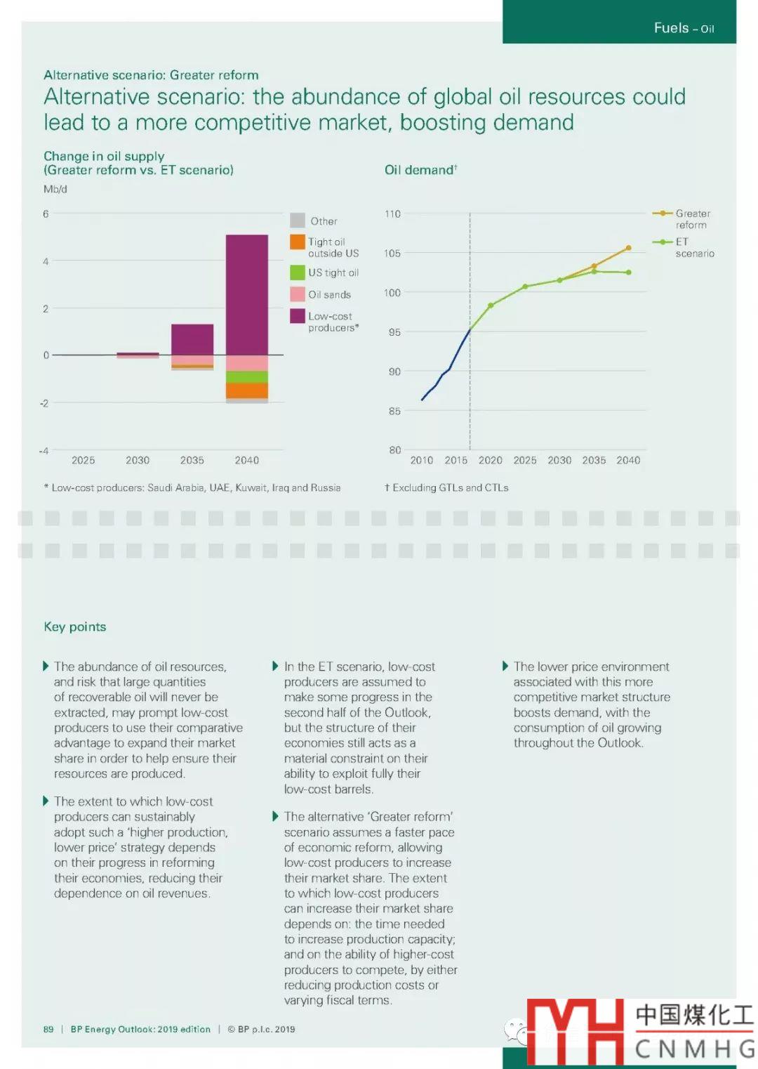 《展望2019》考慮了一系列替代方案,包括需要"更多的能源"、"更少的碳"以及貿(mào)易爭(zhēng)端升級(jí)可能產(chǎn)生的影響。