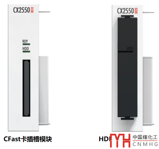 CX2000系列嵌入式控制器的右側(cè)可以連接CX2550擴(kuò)展模塊,包括CFast卡插槽模塊CX2550-0010和HDD/SSD硬盤插槽模塊CX2550-0020,如下圖: