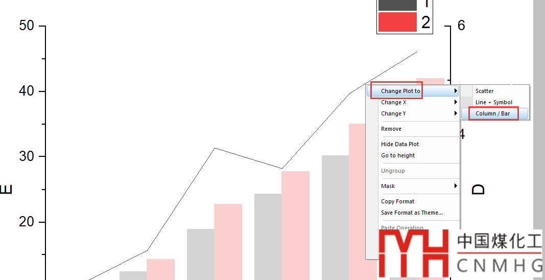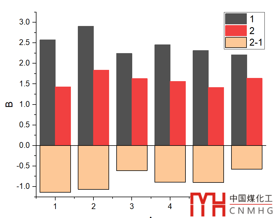 轉換成3=1-2來畫:轉換后3部分就大于0了,繪制方法與文章Origin(Pro):能計算的柱形圖,3=2-1?【數(shù)據(jù)繪圖】介紹的一樣。