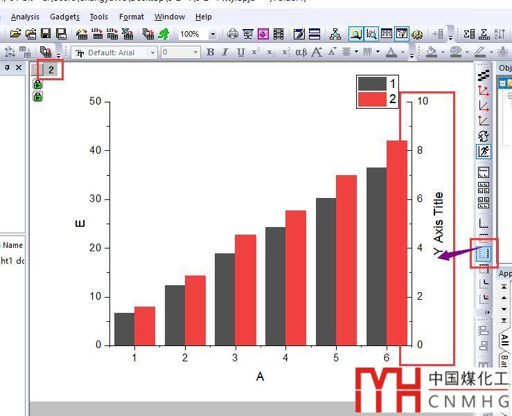 再繪制好圖中1和2部分后,使用左側工具欄添加右側Y軸。