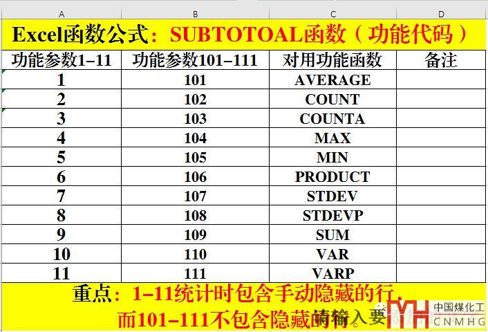 1、Function_num 必需; 數(shù)字 1-11 或 101-111,用于指定要為分類匯總使用的函數(shù)。 如果使用 1-11,將包括手動(dòng)隱藏的行,如果使用 101-111,則排除手動(dòng)隱藏的行;始終排除已篩選掉的單元格。