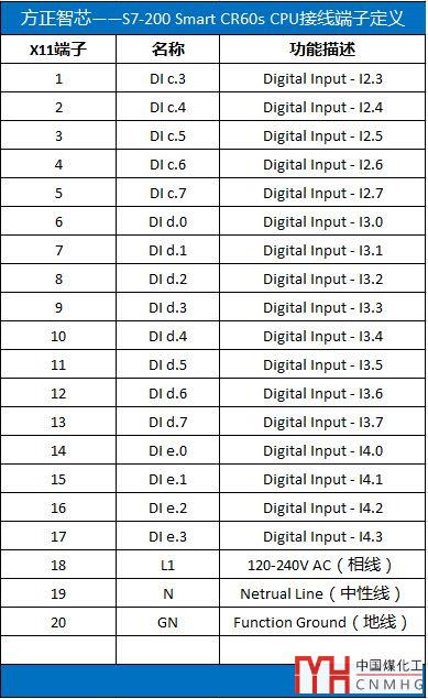 X11總共有20個接線端子,其中第18、19號端子用來給CPU模塊供電。