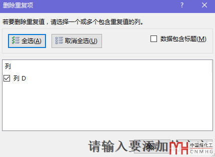 選擇菜單欄【數(shù)據(jù)】-【刪除重復(fù)項(xiàng)】,彈出下面窗口