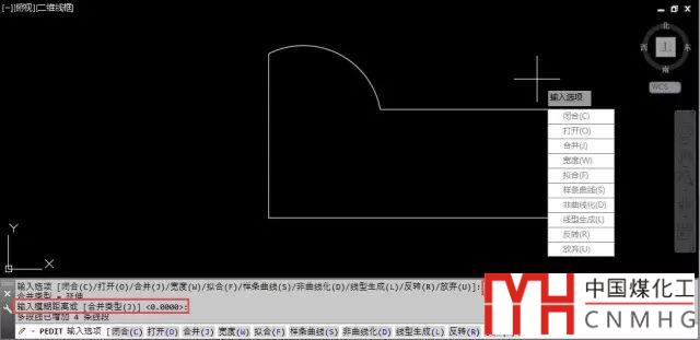 輸入J,回車,軟件會提示輸入模糊距離,默認值為0,直接回車,將連續(xù)的直線段和弧線段連接成一個整體,如圖所示。