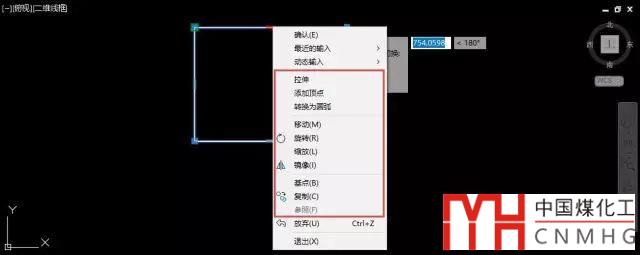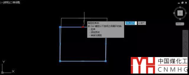 這里有一個小的操作技巧,在進行夾點操作時,可以按CTRL鍵切換選項,比如我們在拉伸一個直線段的中點,按CTRL鍵就可以切換成添加頂點,再按就可以切換為轉(zhuǎn)化為圓弧,如圖所示。