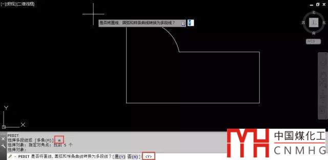 輸入PE命令,回車,當出現(xiàn)上述提示時,輸入M,回車,框選要轉(zhuǎn)換成多段線的直線和圓弧,選擇完后回車,軟件會提示是否轉(zhuǎn)換成多段線,如圖所示。