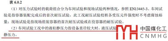 新版HG/T20580征求意見稿的第6章“設(shè)計(jì)載荷”,關(guān)于耐壓試驗(yàn)的載荷規(guī)定有所變化,圖1摘自新版標(biāo)準(zhǔn)的表6.0.2,圖2為HG/T20580-2011的表6.0.2截圖。