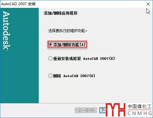 單擊更改按鈕,就會彈出AUTOCAD 2007安裝修復(fù)對話框,如下圖所示。