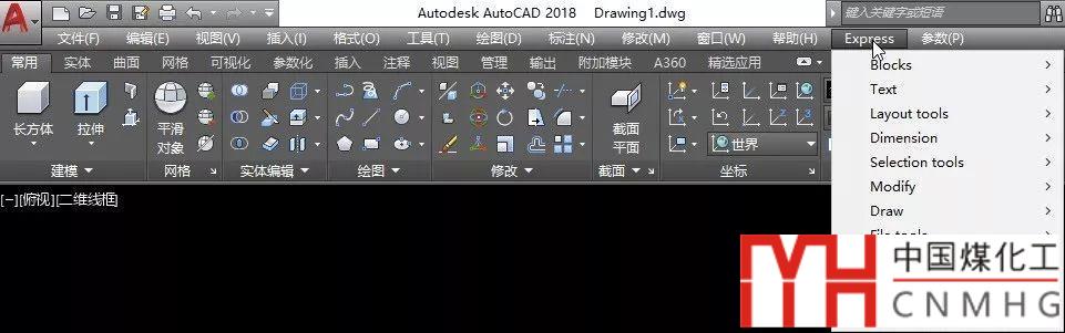 另外,AUTOCAD并未創(chuàng)建擴(kuò)展工具的命令面板,因此即使安裝了擴(kuò)展工具,在RIBBON命令面板界面中也看不到。將菜單欄顯示出來,可以看到擴(kuò)展工具的菜單,如下圖所示。