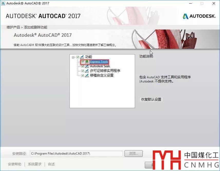 單擊添加或刪除功能按鈕,進(jìn)入添加或刪除功能頁,勾選Express Tools,如下圖所示。