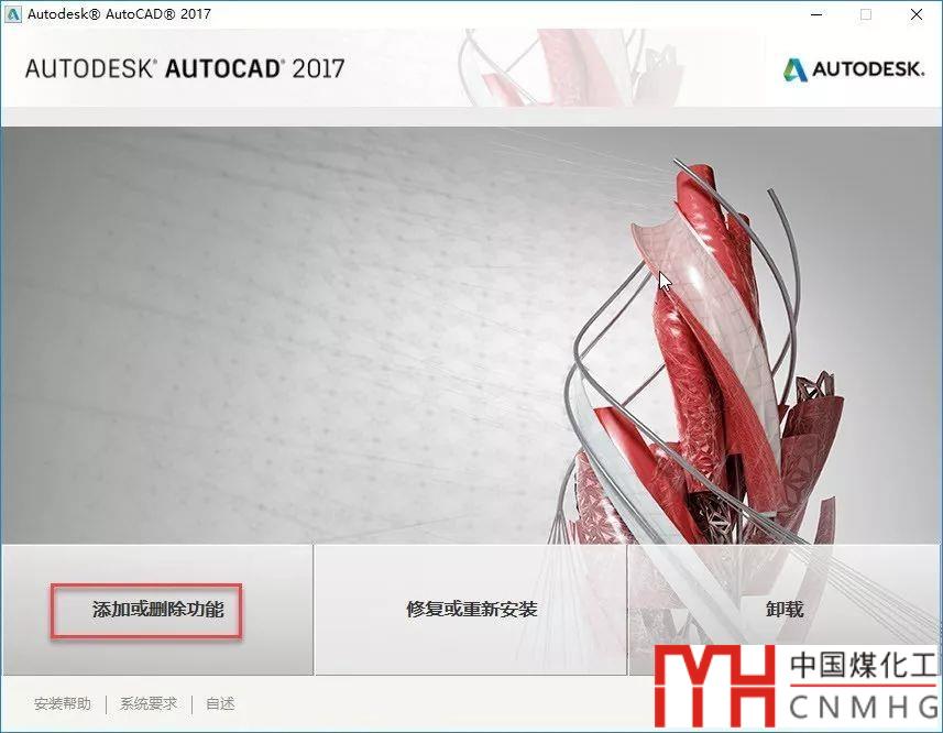 如果已經(jīng)安裝了AUTOCAD 2017,添加擴(kuò)展工具的的操作是類似的。退出CAD程序,在控制面板的程序和功能對話框中找到AUTOCAD 2017,對話框頂部顯示的按鈕跟2007版有所不同,如下圖所示。