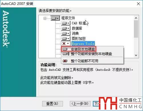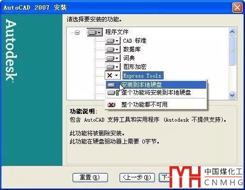 單擊“下一步”,就會彈出跟前面截圖一樣的選擇要安裝功能的對話框,選上Express Tools就好了,如下圖所示。