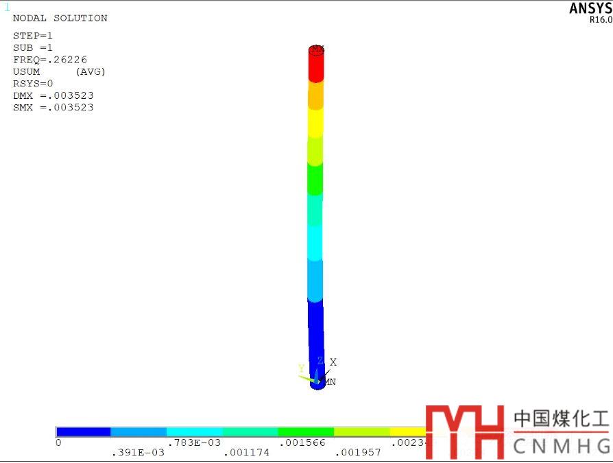 求解的結(jié)果,前三階自振頻率結(jié)果為0.263,1.6241,4.4664,其結(jié)果和論文的分析結(jié)果完全一致。