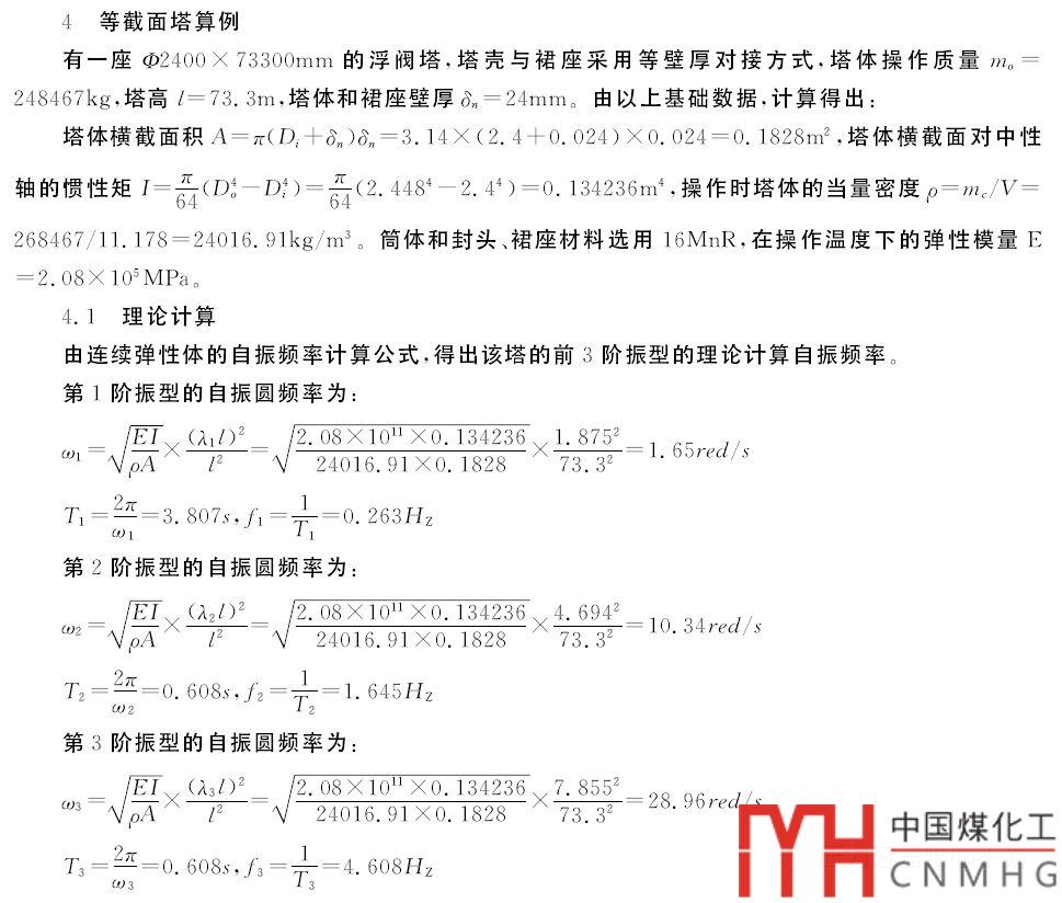 在計(jì)算塔設(shè)備的風(fēng)載荷和地震載荷時(shí),首先要計(jì)算設(shè)備的自振周期。