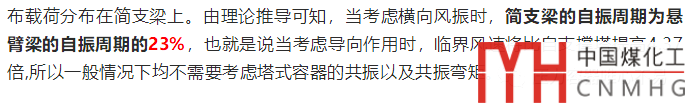 當(dāng)自振周期減少時(shí),臨界風(fēng)速提升(比如簡支提升4.37倍。),設(shè)備更不容易發(fā)生共振,這也是為什么細(xì)長塔加了導(dǎo)向后,設(shè)備更安全的原因之一。