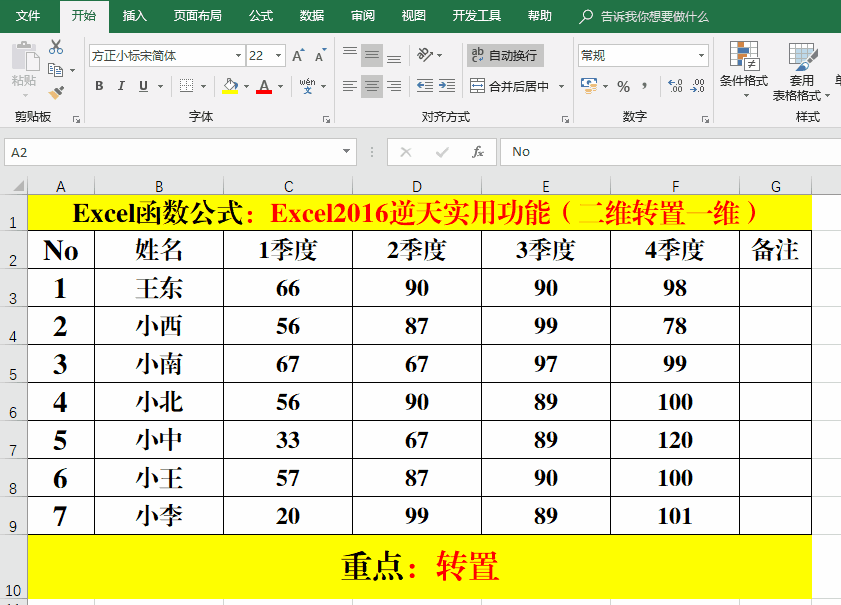要達到上述目的,我們可以使用Excel2016的新增的“轉(zhuǎn)置功能”。