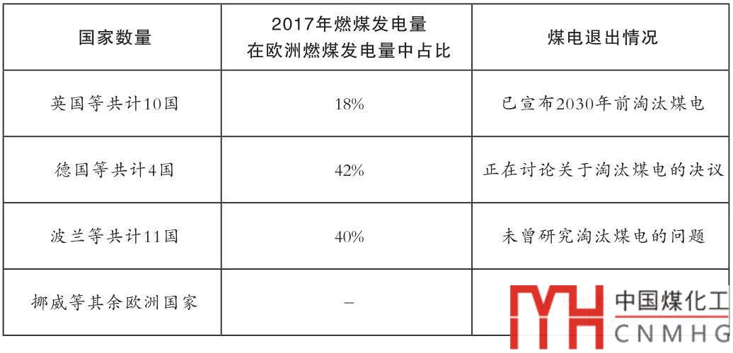 表1 歐洲國家煤電逐步退出現(xiàn)狀(截至2018年11月)