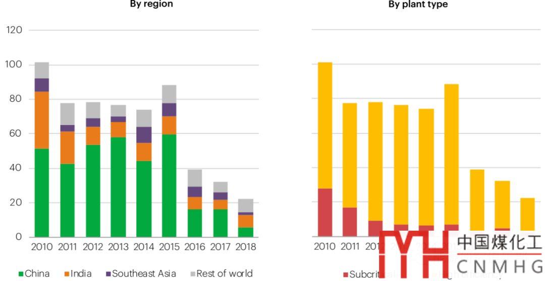 圖4 2010~2018年間全球煤電廠最終FID(單位:吉瓦)