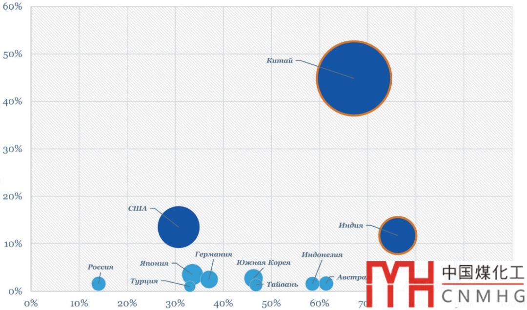 圖3 2017年世界主要煤電生產(chǎn)國(或生產(chǎn)地區(qū))燃煤發(fā)電情況