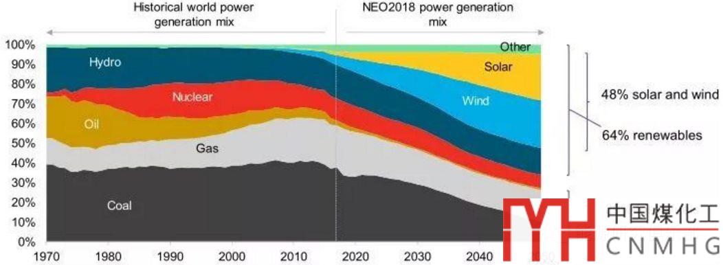 圖8 BNEF對2050年前全球發(fā)電結(jié)構(gòu)的預(yù)測