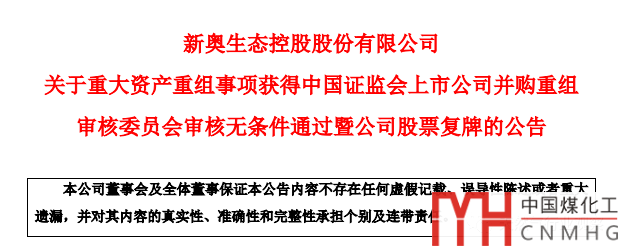 獲證監(jiān)會無條件通過!新奧股份258億收購新奧能源大戲落幕!