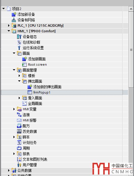 第一步:打開博途開發(fā)環(huán)境,在【畫面管理】-【彈出畫面】中新建一個彈出窗體畫面,命名為:frmPopup1,如下圖: